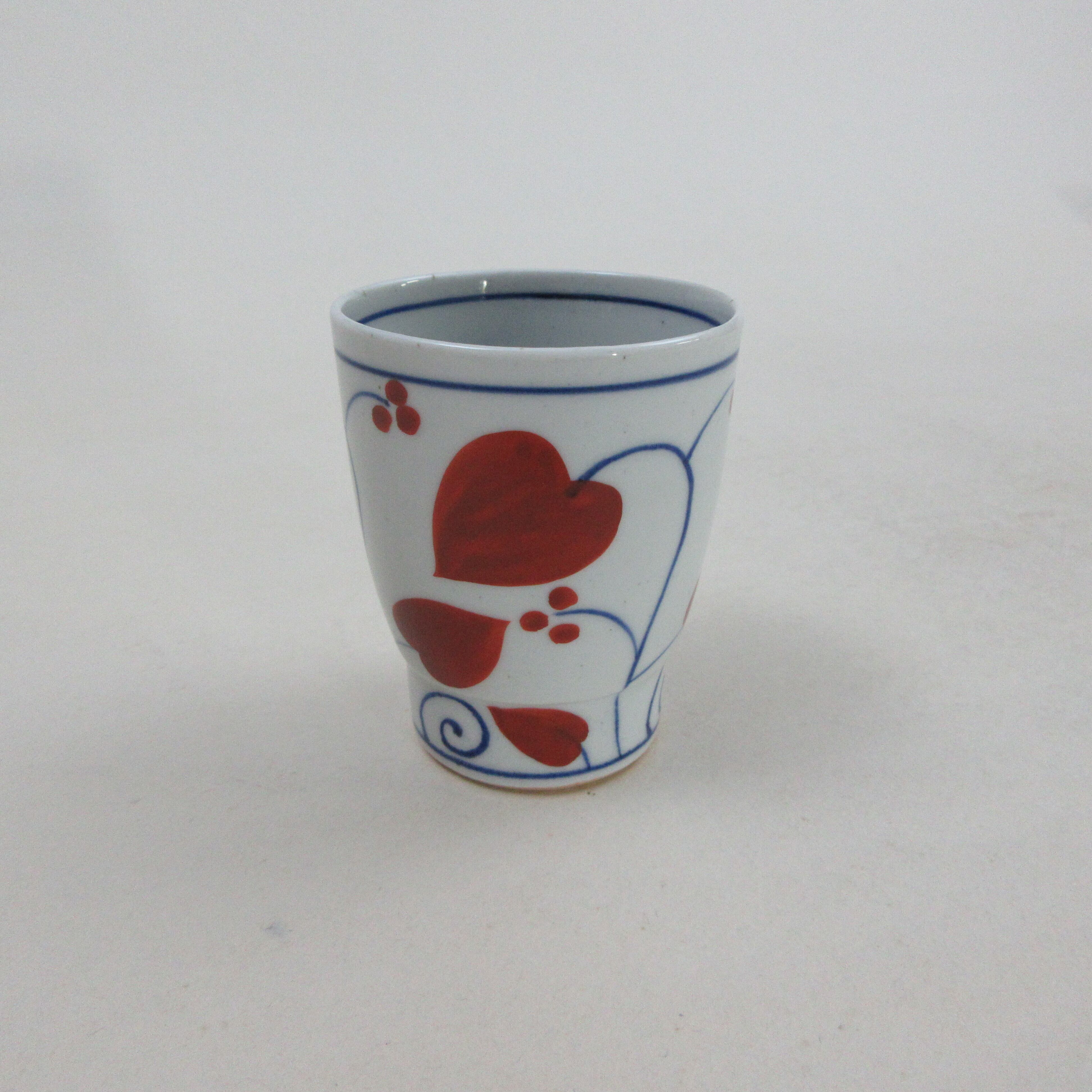 安定感のあるフォルムで人気のハート型の葉っぱ模様の湯呑