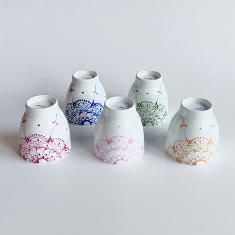 愛らしいレース柄の湯呑 ブルー・グリーン・オレンジ・レッド・ピンク