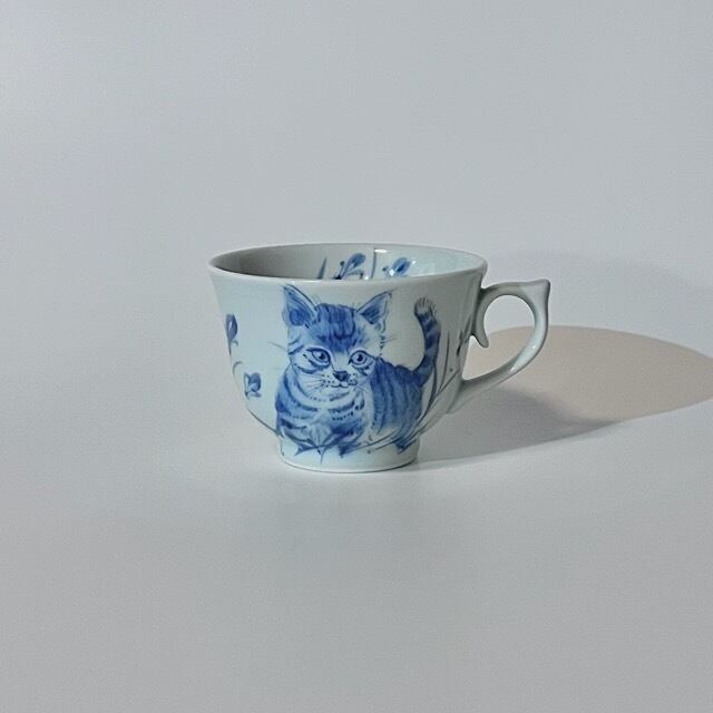 中尾正三郎 作 和猫と春草 コーヒー碗皿